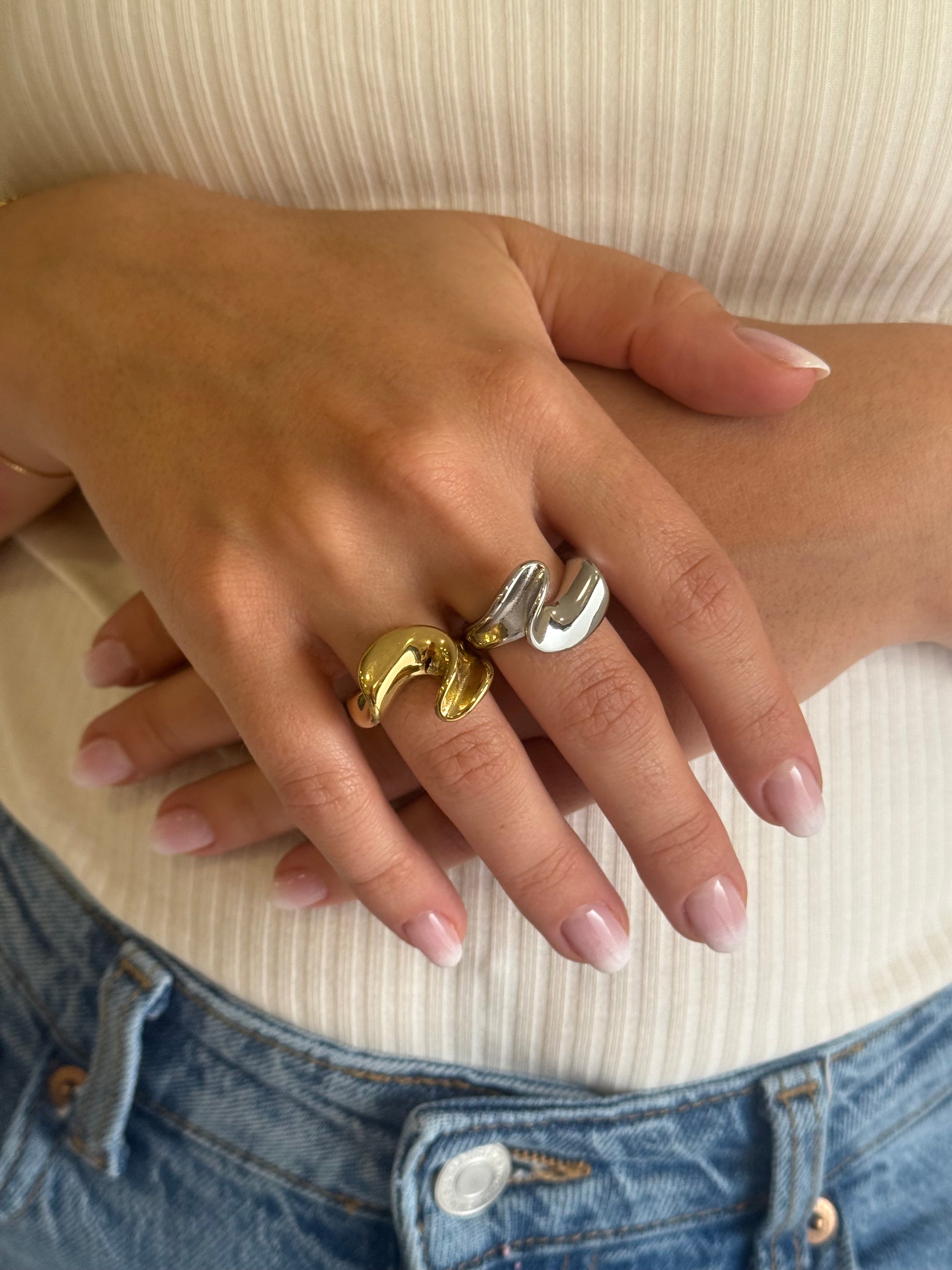 Curvatura perfetta. Questo anello avvolge il dito con un design sinuoso e contemporaneo, per un tocco di stile unico e audace.
