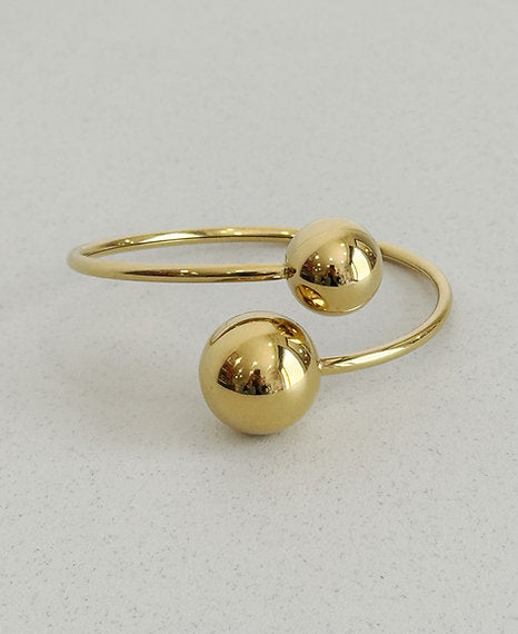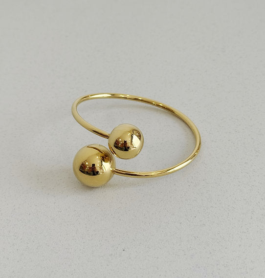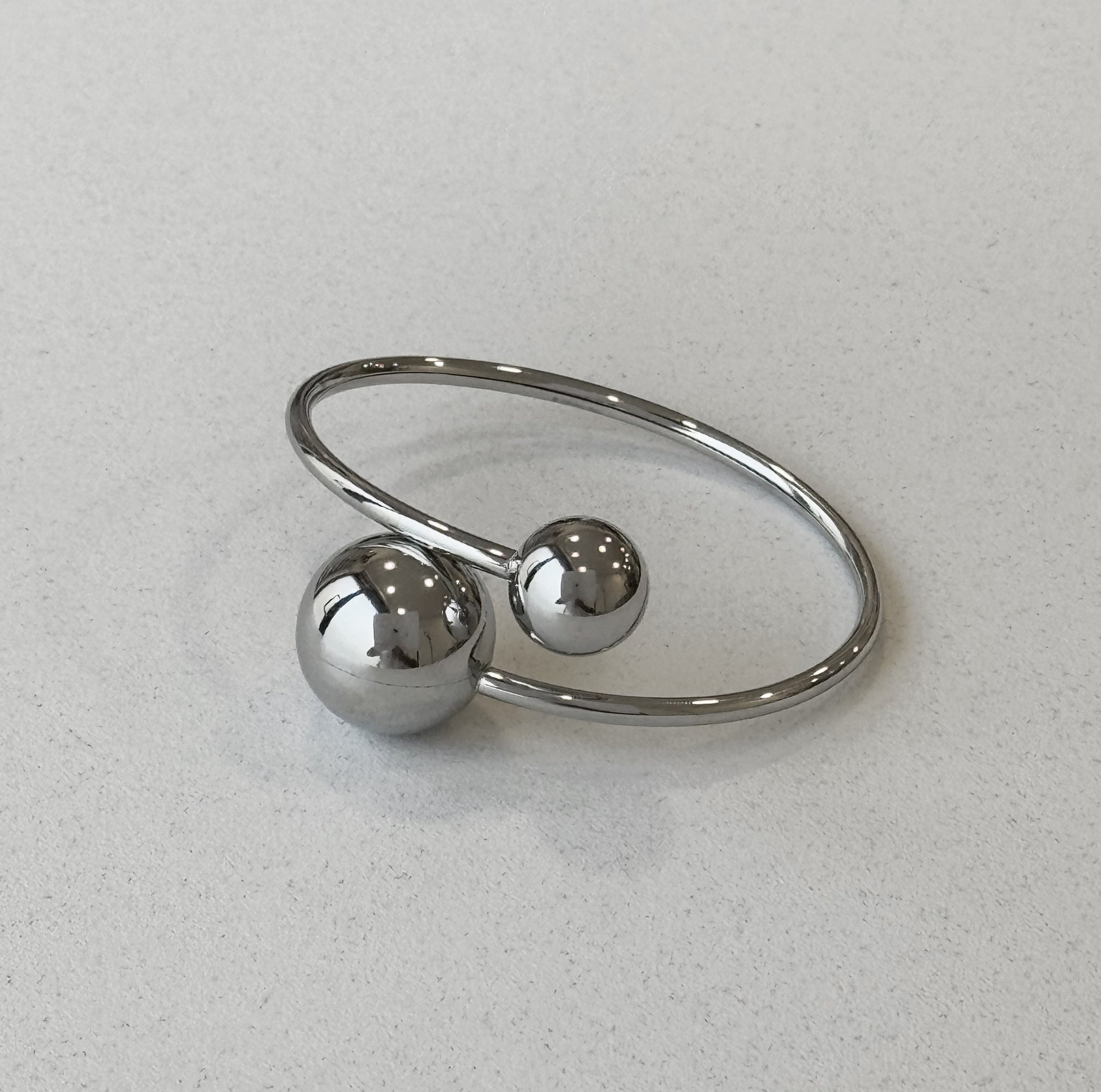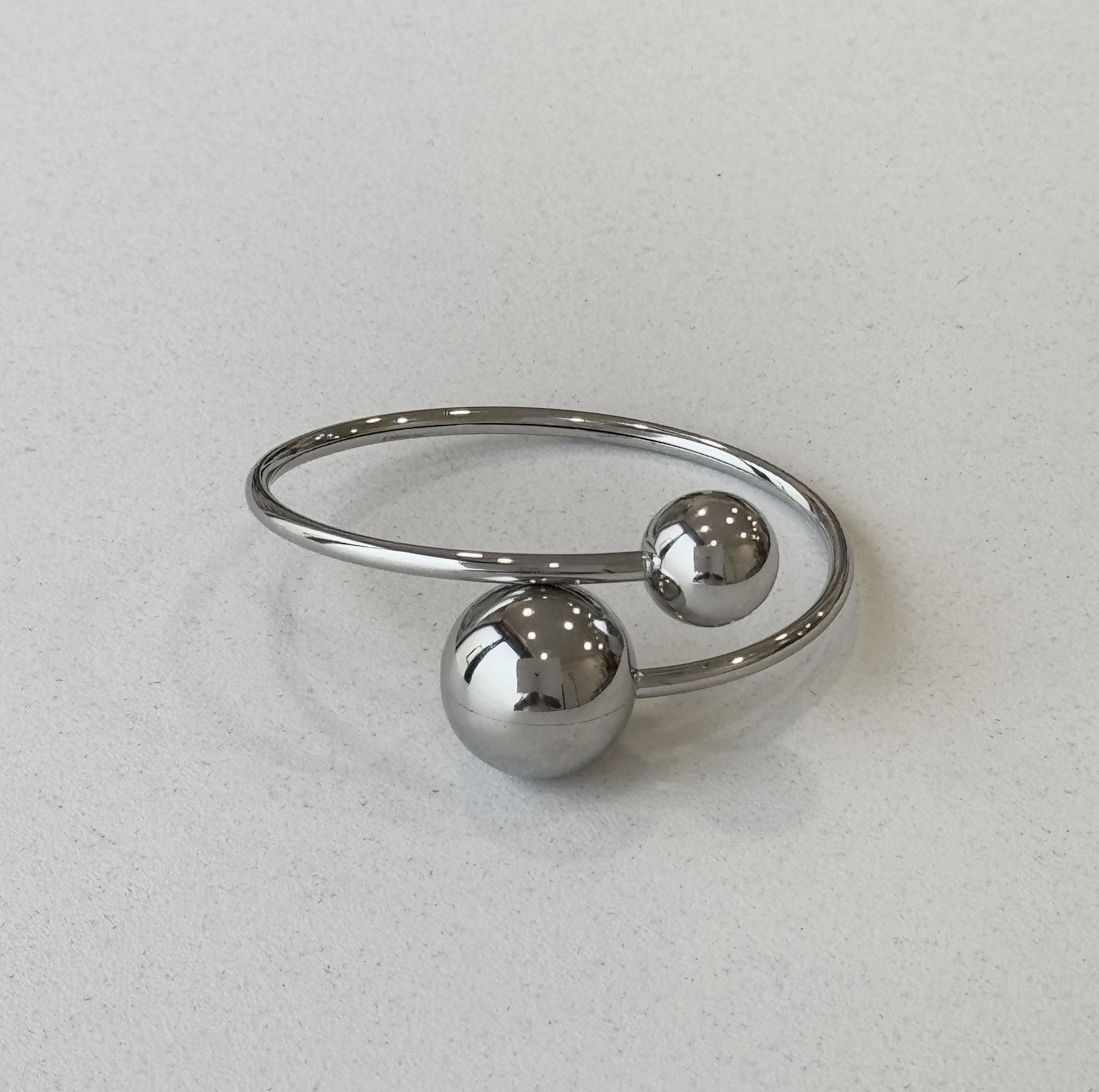 Bracciale rigido sottile, regolabile, con due sfere di misura diversa. Per completare un look elegante e raffinato.