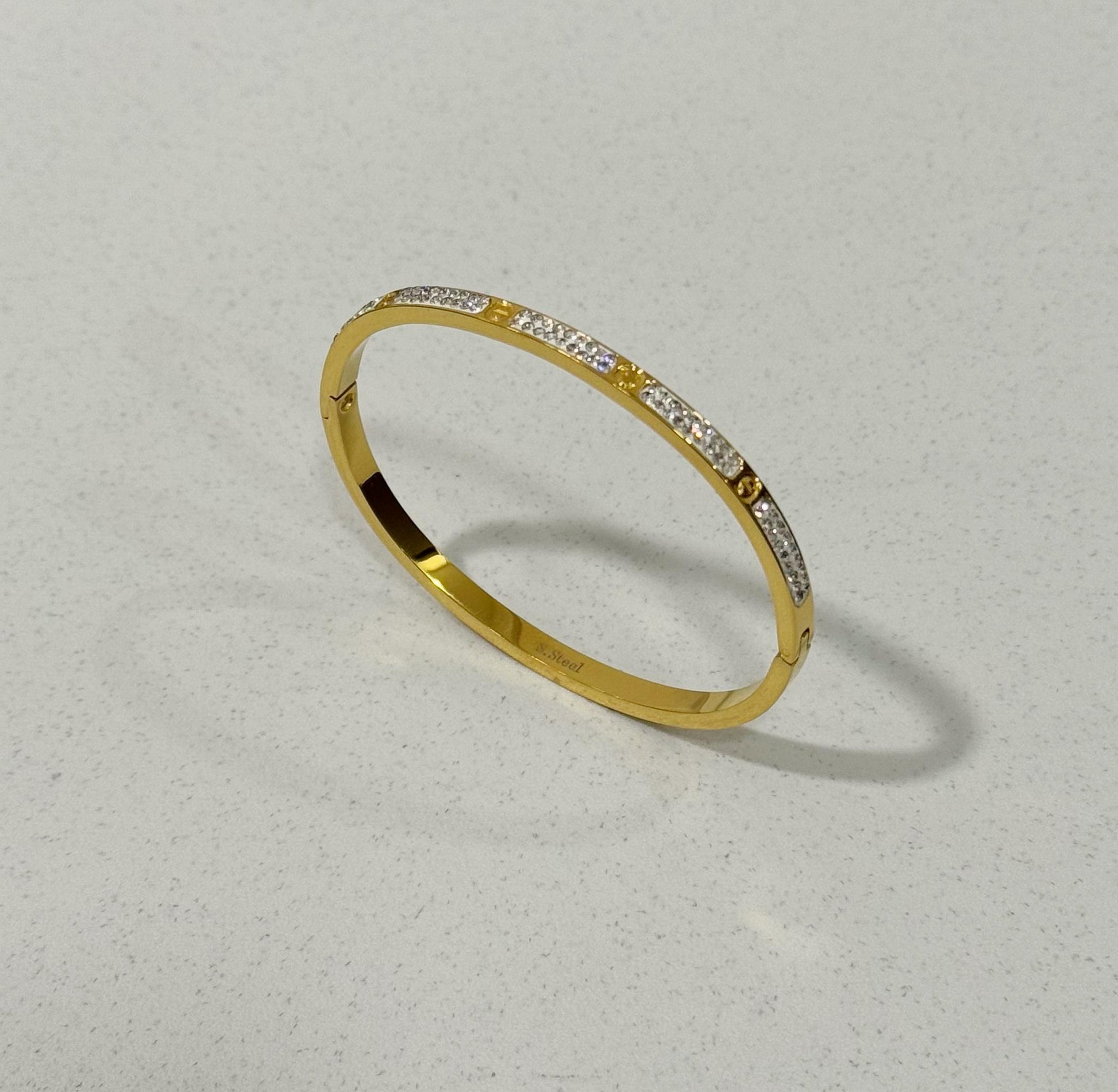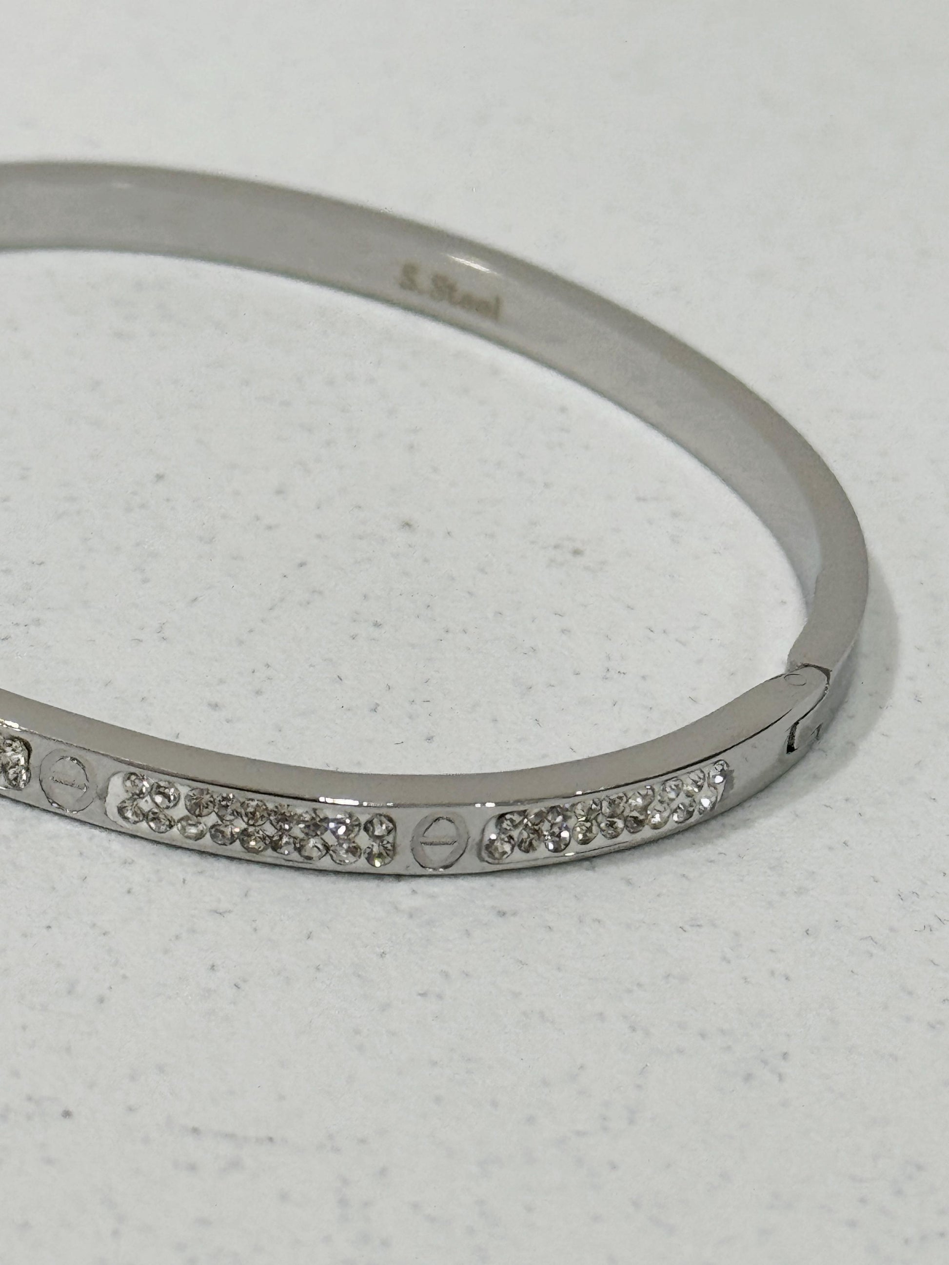 Bracciale rigido Finezza, in acciaio inox con una fila di zirconi scintillanti. E' l'accessorio ideale per aggiungere un tocco di luce al tuo look.
