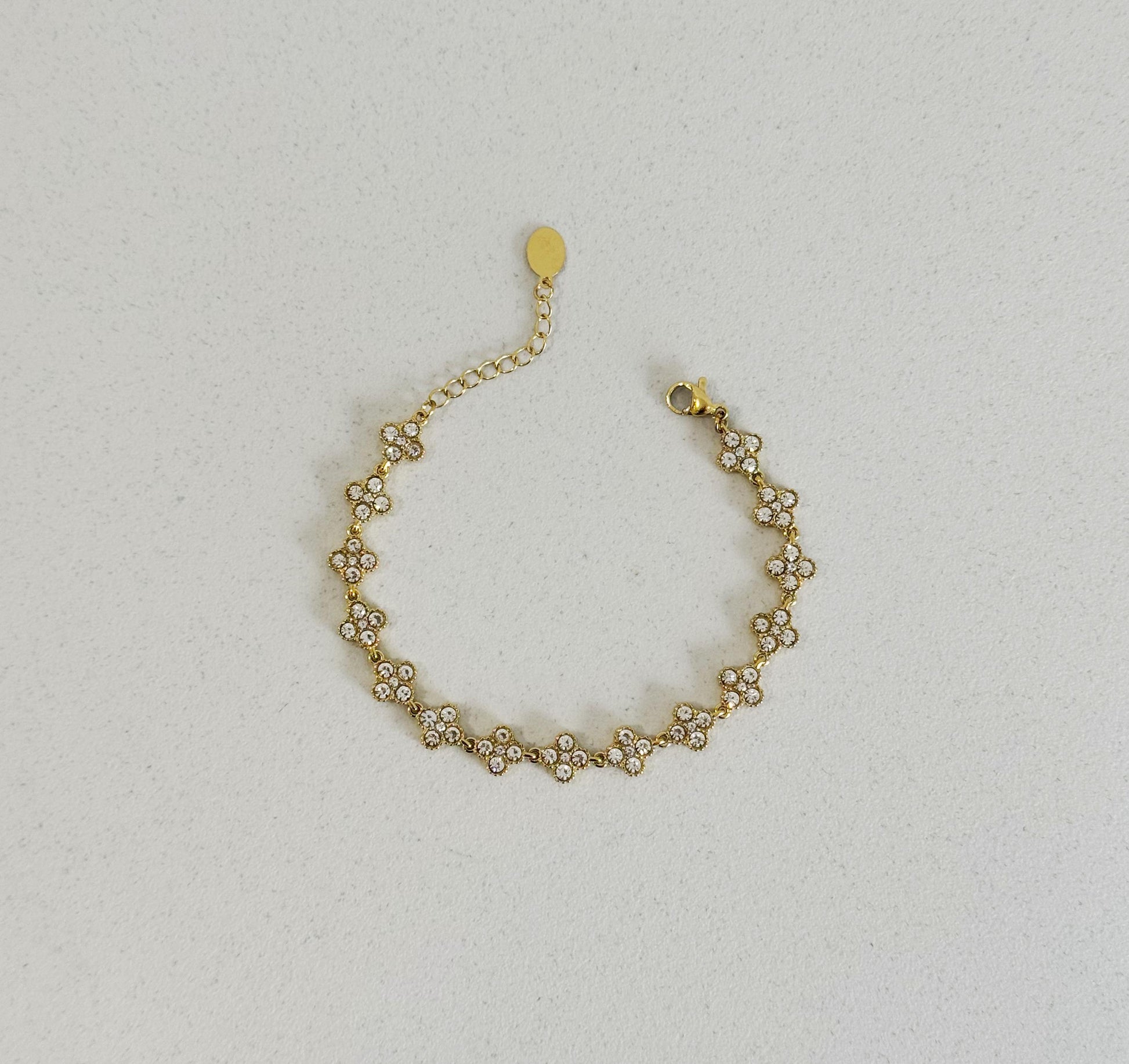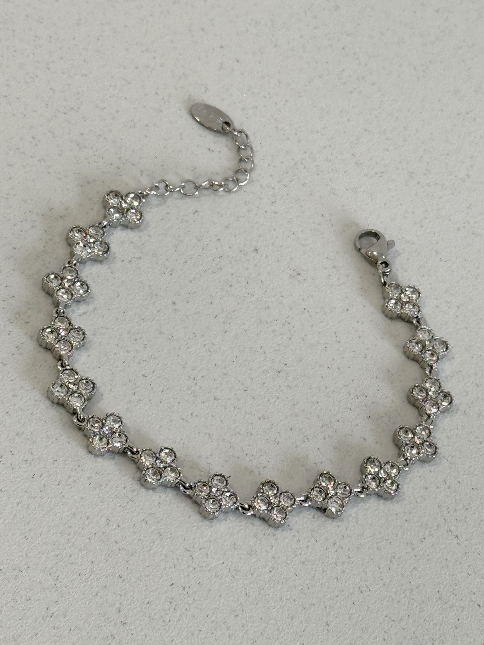 Il bracciale Nillë è una sequenza di piccoli zirconi incastonati che ricreano dei quadrifogli brillanti.