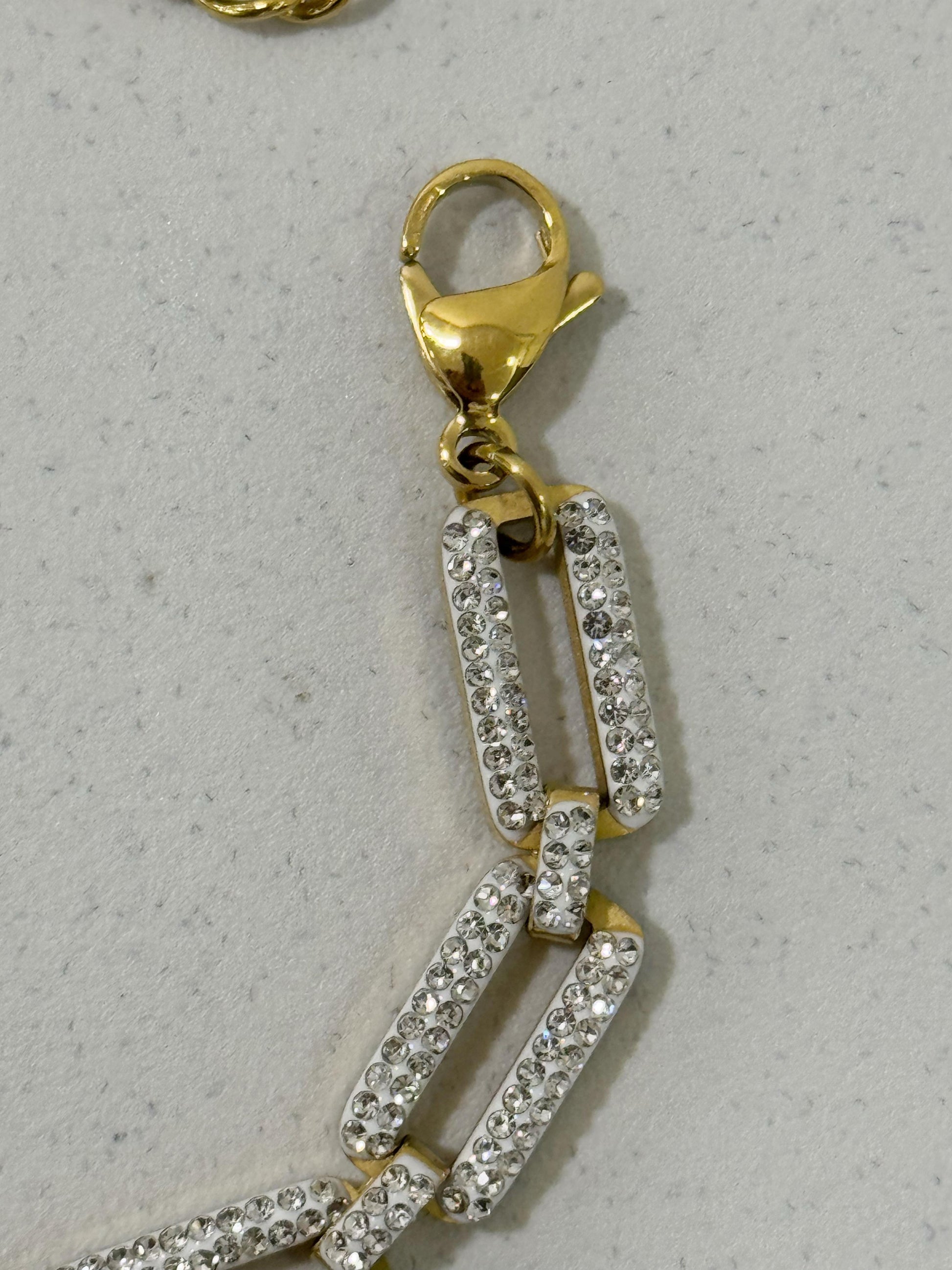 Un tocco di luce per il tuo polso: questo bracciale gold cattura l'attenzione con le sue maglie rettangolari decorate con piccoli strass silver.
