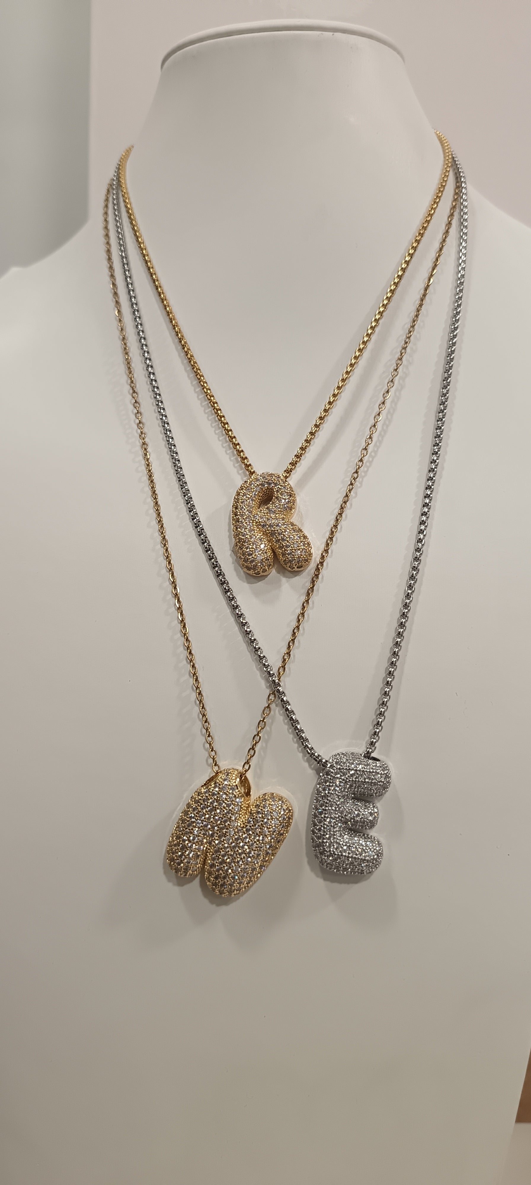 Valorizza il tuo stile con questa splendida collana con lettera iniziale big. La lettera è impreziosita da zirconi incastonati, disponibile in argento e oro, perfetta per ogni occasione.