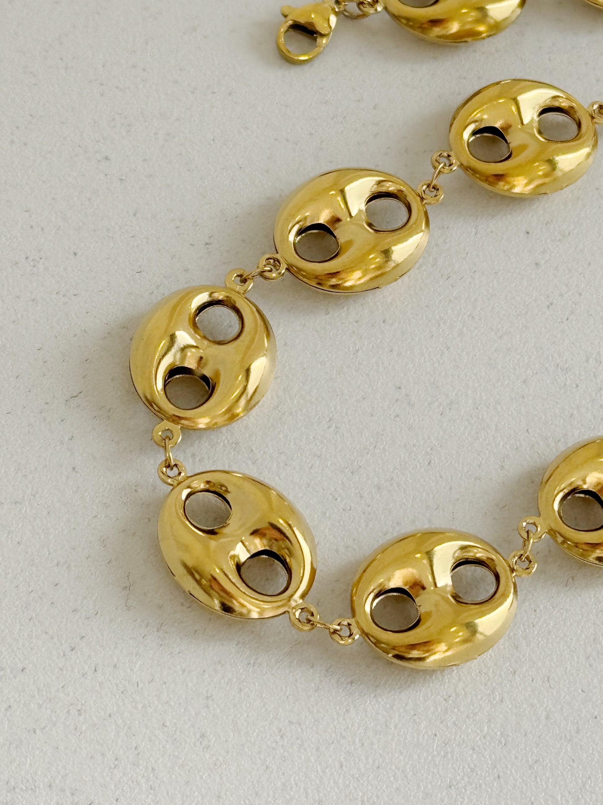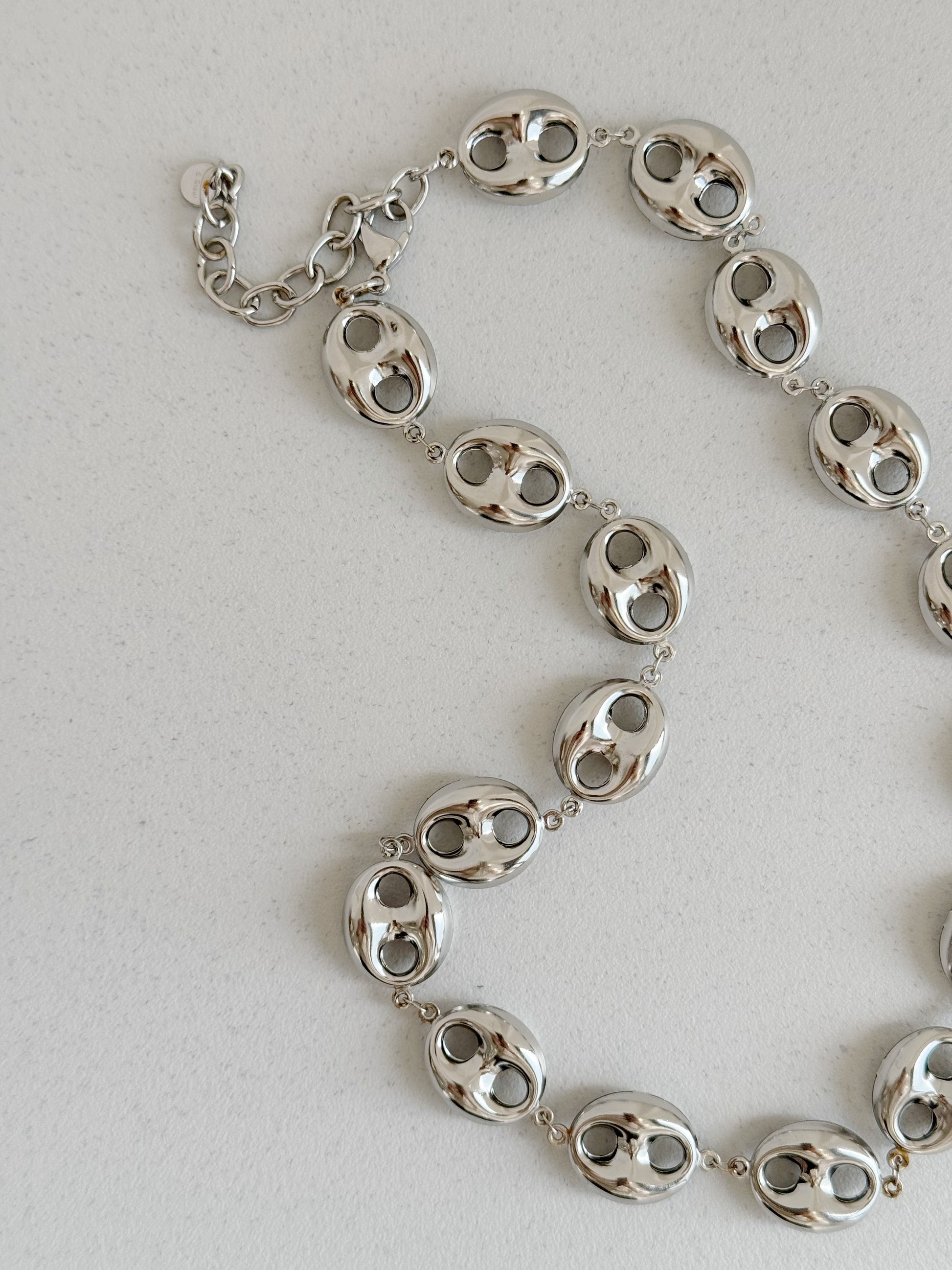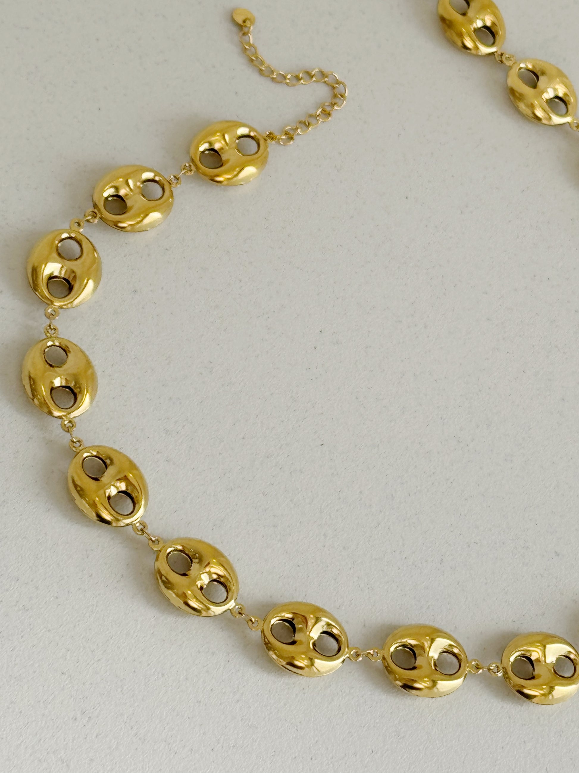 Maglie audaci, stile inconfondibile. Questa collana, dal design a chicco di caffè, è il gioiello statement che darà un tocco grintoso e raffinato al tuo look.
