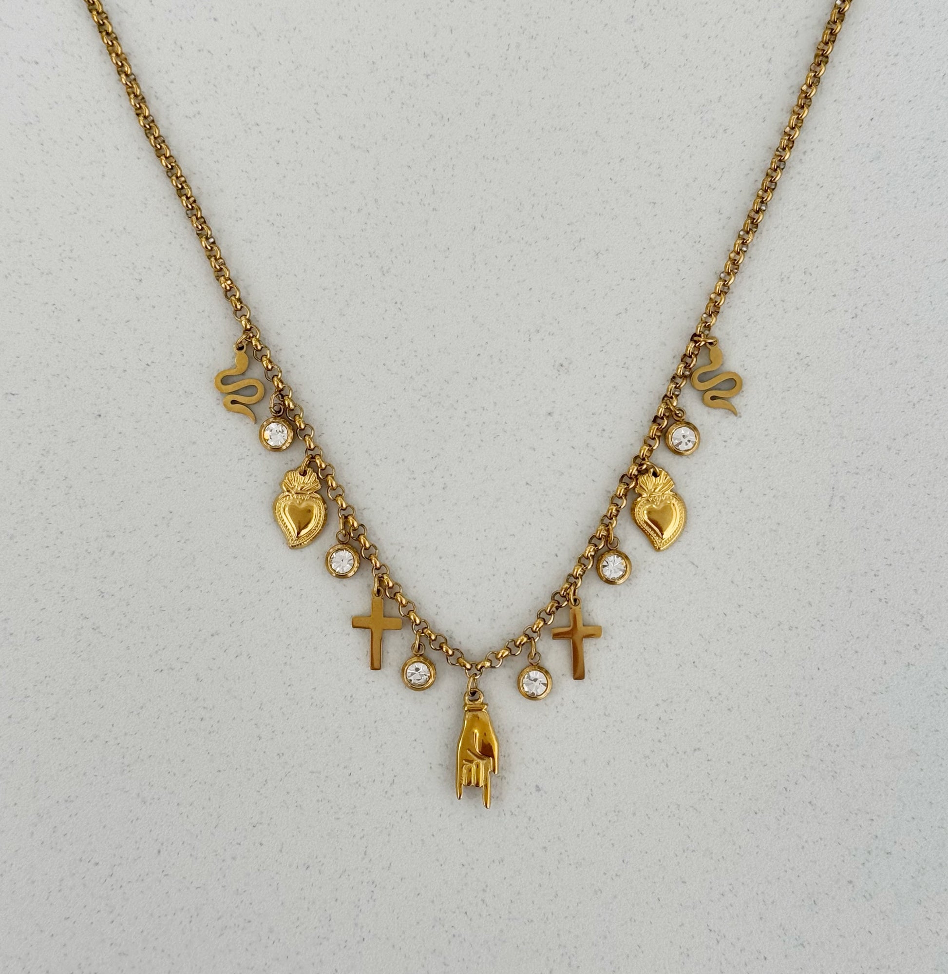 Una collana ricca di charms iconici, ognuno un simbolo di fortuna e stile. Crea il tuo racconto unico.