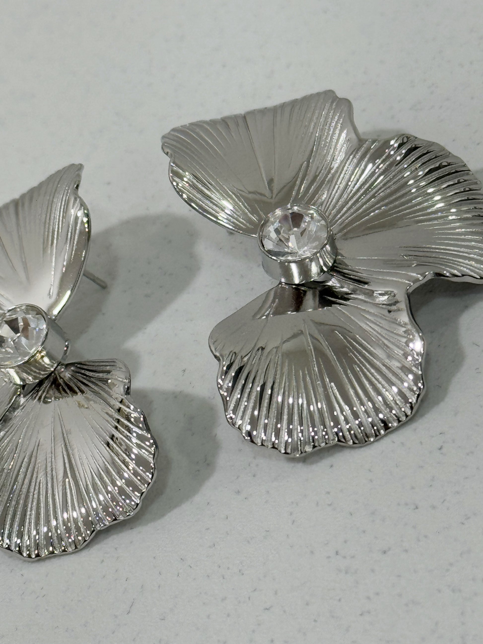 Orecchino a forma di Fiore con zircone bianco al centro. Elegante e raffinato.