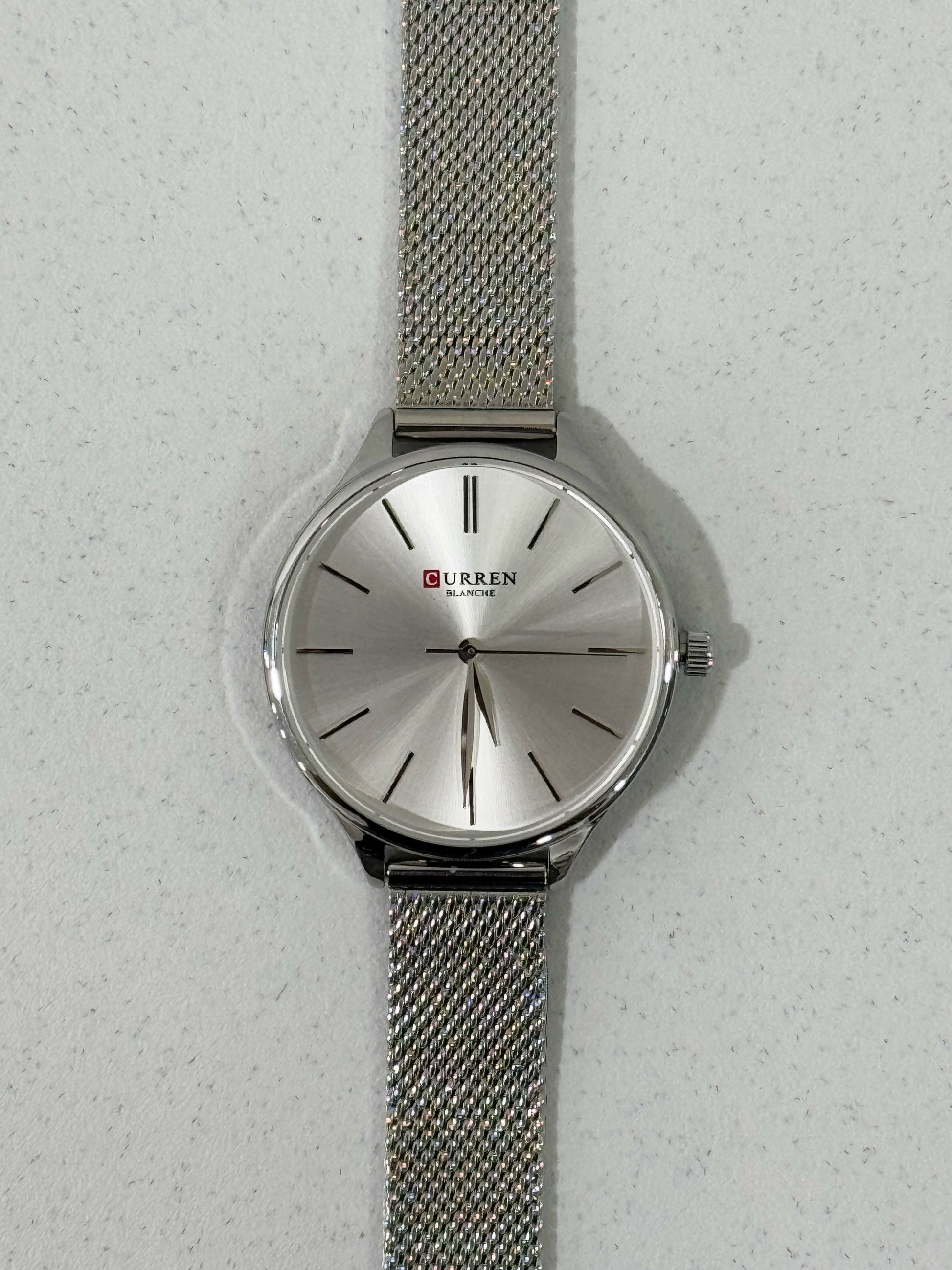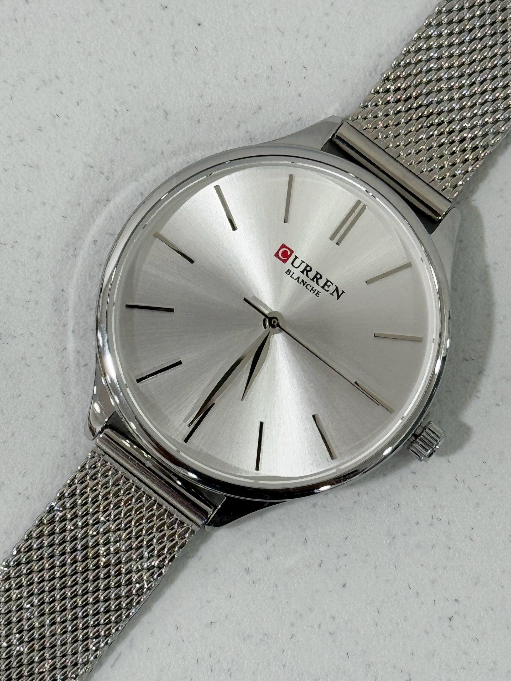 Orologio in acciaio inox, finitura gold o silver. Il bracciale è caratterizzato da un design pulito e minimalista e impreziosito da un motivo a viti inciso, che aggiunge un dettaglio raffinato e distintivo.